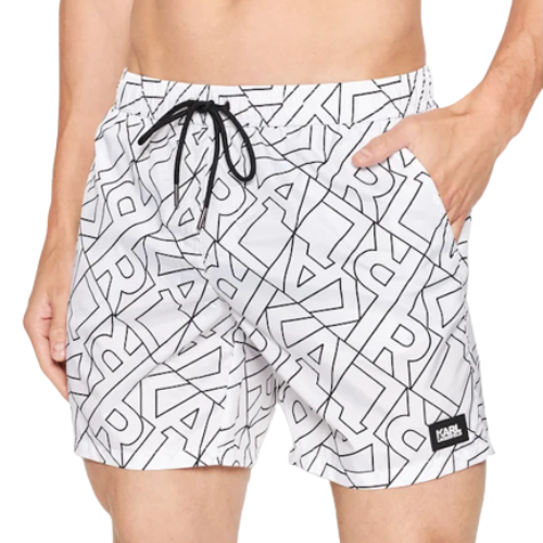 Kvalitní pánské plavecké šortky od značky KARL LAGERFELD mají elastický pas spolu se stahovací tkaničkou.
