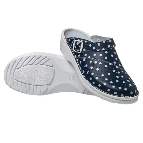 Ortopedická obuv s protiskluzovou spodní částí. perforovaný kožený svršek s otevřenou patou nastavení šířky svršek přišitý ke dnu vnějším stehem obuv s dvoufunkčním páskem umístěným na patě protiskluzová podrážka s anatomickým ortopedickým profilem, z expandovaného polyuretanu, výška spodku pod cho... celý popis