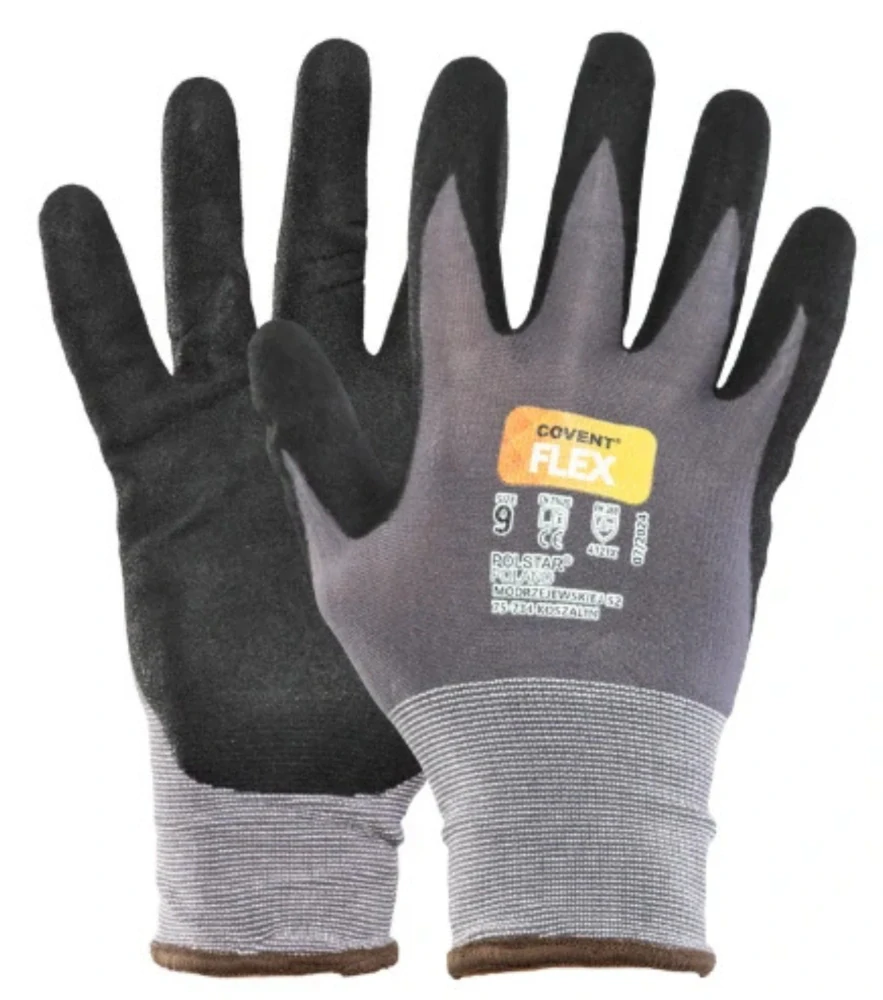 Minimální odběr 12 párů rukavic. Rukavice Covent FLEX vyrobené z nylonu, potažené v oblasti úchopu nitrilem. Ideální pro manuální práci. Velmi dobrý pocit z drženého předmětu. Dobře se přizpůsobí tvaru ruky. Pružné a ukončené lemem.