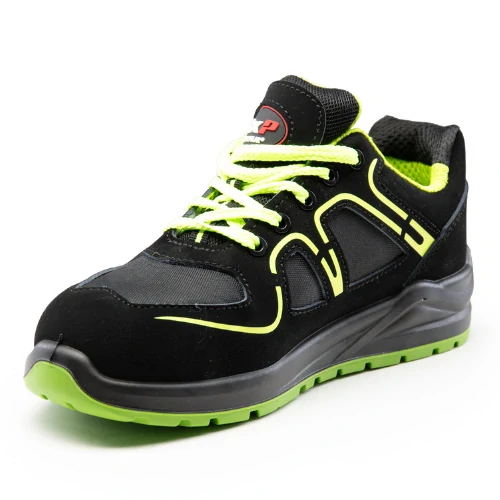 Bezpečnostní obuv FLUO má svršek obuvi z nubukové kůže.  kov, odolný proti nárazům s energií 200 J a drcení do 15 kN, Horní část boty: nubuková kůže o tloušťce 1,8 - 2,0 mm, Vložky z látky OXFORD, Svršek obuvi je v barvě: zelený, černý, Barva nitě: černý, .Jazyk: měkké a husté, ... celý popis